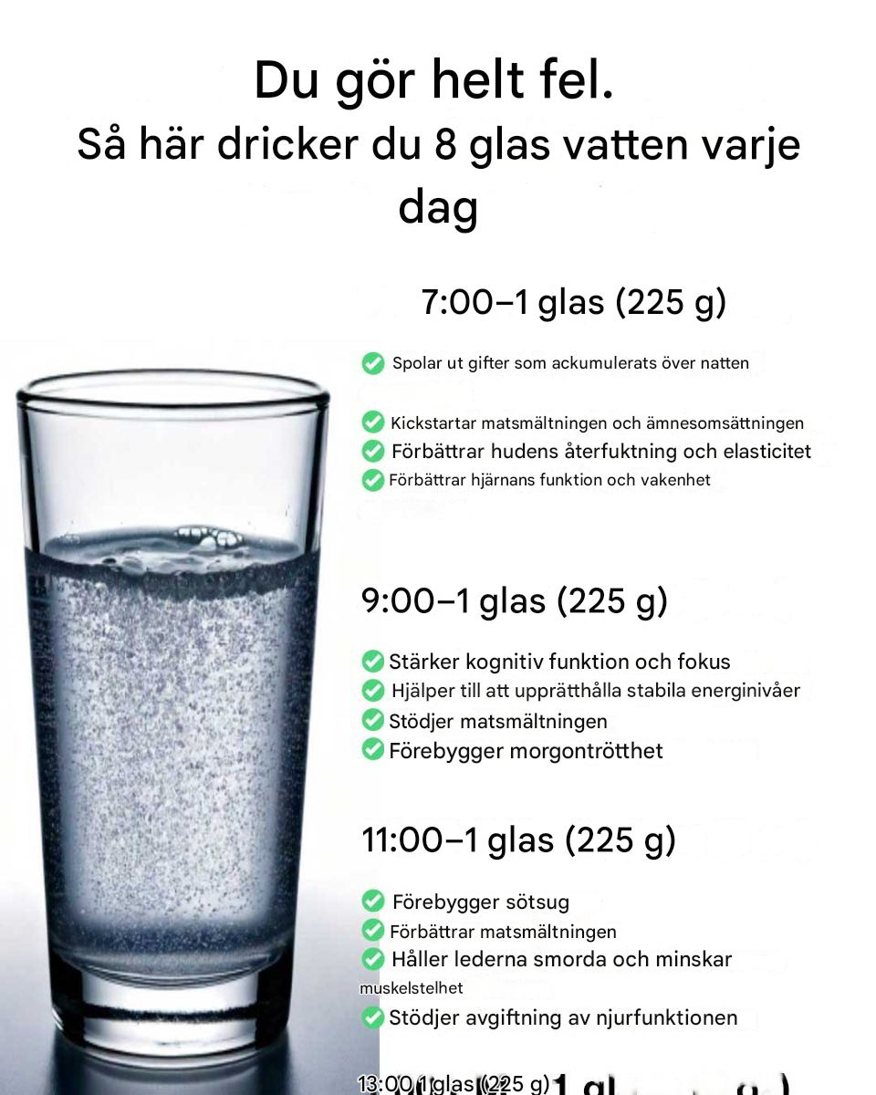 Regeln “8 glas om dagen” är en enkel riktlinje som föreslår att individer bör dricka ungefär åtta 240 ml vatten dagligen, totalt cirka 2 liter eller en halv gallon. Denna rekommendation baseras på det genomsnittliga behovet hos en frisk vuxen, men individuella behov kan variera beroende på faktorer som ålder, kön, aktivitetsnivå och klimat. Även om regeln fungerar som ett generellt riktmärke är det viktigt att lyssna på kroppens signaler och justera ditt intag därefter.