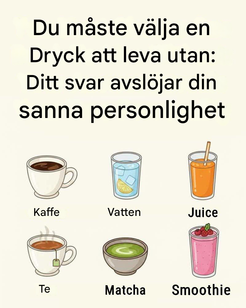 Tänk dig detta: du kan behålla kaffe, vatten, juice, te, matcha och smoothies i ditt liv – men en av dem måste försvinna för alltid. Inget fusk. Inget “bara på helgerna”. En drink försvinner från din dagliga rutin.