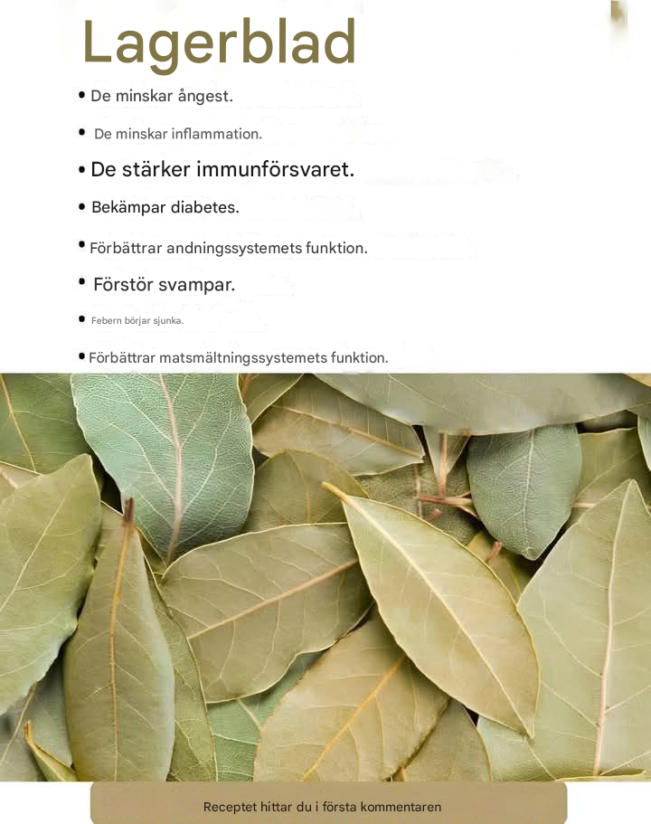 Förbättrar matsmältningen: Lagerblad stimulerar produktionen av matsmältningszymer, vilket underlättar matsmältningen och förbättrar maghälsan, samt matsmältningsstörningar och gasbildning.